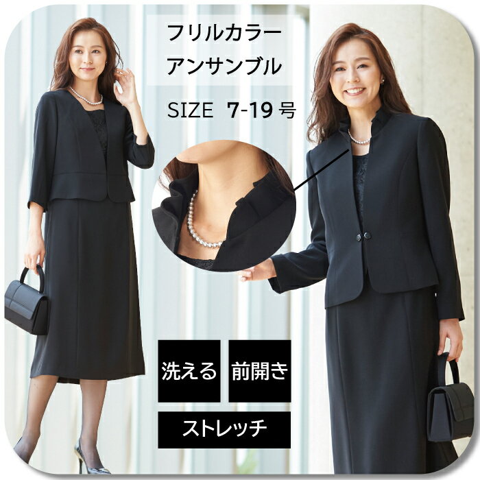 ブラックフォーマル レディース 東京ソワール 礼服 喪服 女性 婦人 黒 ミセス 洗える ウォッシャブル 前開き アンサンブル ワンピース ジャケット セットアップ オールシーズン 通夜 葬式 告別式 リボン かわいい おしゃれ 大きいサイズ 卒業式 ママ 大きいサイズ 1503211