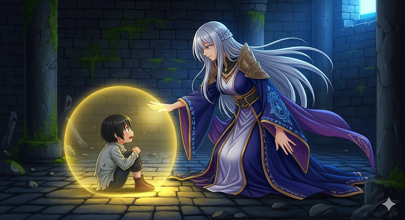 この暗く閉ざされたケベンリアークの世界に、突如として差し込んだ一筋の光こそが、大魔術師レイナでした。虐待の真っ只中にいた彼にとって、自分を救い出し、無条件の優しさで包み込んでくれたレイナの存在は、まさに天からの啓示にも等しい衝撃でした。生まれて初めて向けられる温かい眼差し、優しい言葉、そして自分を慈しむように触れる温かい手。その全てが、彼の知る世界の法則を根底から覆すものであり、当初は戸惑いと恐怖さえ感じたほどでした。しかし、レイナが与えてくれた安全な寝床と美味しい食事、そして何よりも「君は大切な存在だ」という揺るぎない肯定は、彼の凍てついた心をゆっくりと、しかし確実に溶かし始めます。レイナとの出会いは、彼にとって単に命を救われた以上の意味を持ちました。それは、彼が「ケベンリアーク」という一人の人間として、初めてその存在を認められ、愛されるという経験をした瞬間であり、彼の人生が絶望から希望へと反転した、運命の分岐点となったのです。