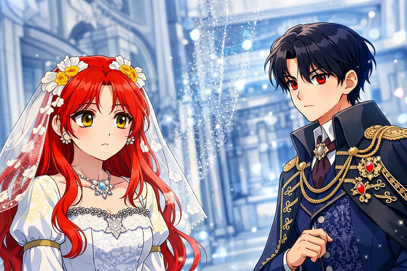序盤は、ブランチェ侯爵家が大公家との政略結婚を目前に控えながら、肝心の一人娘であるエリカ・ブランチェが結婚直前に病で倒れるところから始まります。侯爵家にとってこの縁談は、体裁だけでなく莫大な富と権力を手に入れるための切り札なので、破談は避けたいわけですね。ただ、世間では大公家の息子セバスチャン・アクリフに冷酷で凶暴という悪評が立っており、本物の令嬢が怯えている空気も重なって、家の中はピリついたまま進みます。そこで侯爵が目をつけるのが、乳母ジュリアの娘で、本物の令嬢と同じ名を持ち、容姿も似ている少女エリカです。侯爵はジュリアを人質に取り、娘エリカに「身代わりの花嫁」として大公家へ行けと命じます。エリカに選択肢はほぼなく、母を救うために嘘を飲み込み、使用人の立場から一夜で大公子の花嫁になるという、人生がひっくり返るような出発を切ります。